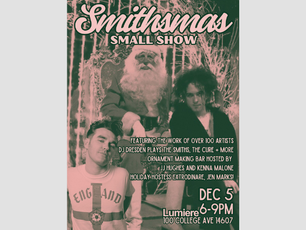 Lumiere is taking this First Friday to celebrate with our holiday party, Smithsmas! Enjoy the nearly 400 works in Small Show, all while DJ Dresden fills us with the Smithsmas Spirit— featuring musical selections by The Cure, The Smiths, probably ...