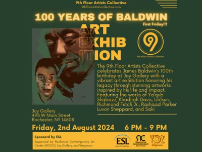 Join us at Joy Gallery as the 9th Floor Artists Collective celebrates the legendary James Baldwin’s 100th birthday on First Friday with a vibrant art exhibition. Enjoy stunning artworks inspired by Baldwin’s life and legacy, plus refreshments! Admission is free!
