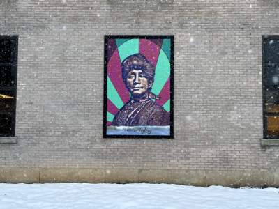 The works – like one pictured here of Hester Jeffrey, a key figure in the suffrage movement who is celebrated for her work with the Political Equality Club and the National Association of Colored Women’s Clubs – reimagine the tradition of memorial stained glass windows through a contemporary lens. The project honors three foundational, though still lesser-known, figures in early Rochester, celebrating the legacies of these individuals, whose contributions to abolition, suffrage, and community organizing continue to shape the city’s cultural fabric today.