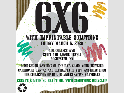 This First Friday, we are opening our doors all day for Make Art Day! We have teamed up with others all around the city and the goal is to have 1,000 people making artwork in Rochester on that day! All the artwork created will be collected and donated to Rochester Contemporary Art Center for its 6×6 exhibition and fundraiser. Come down to Imprintable Solutions with your co-workers, family, and friends and claim one of our 6×6 recycled cardboard canvases and create something beautiful on something recycled. We will have a unique and fun selection of supplies for you to decorate with, we can’t wait to see you and your creations!