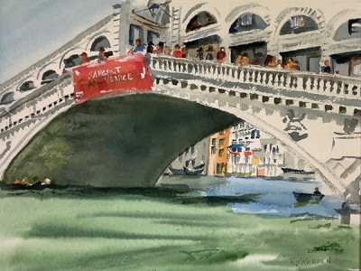 Image: “My View of Ponte di Rialto” by Kathleen Warren. Watercolor.