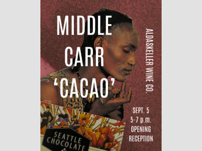 Aldaskeller Wine Co. and Cacao Coffee & Tea will host a wine and chocolate pairing for the opening reception of Middle Carr’s show ‘Cacao’ featuring new work by the artist. Carr’s medium, collage, merges representations of body, consumer culture, and global food networks, incorporating packaging from cacao products to bring to light the connections between people, place, labor, and consumption.