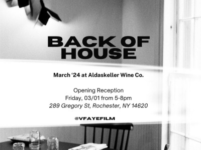A collection of film photographs celebrating and recognizing the many moving parts behind the food and beverage scene here in Rochester; showcasing the people whose hard work goes into the meals, baked goods, and coffee you order everyday. Complimentary natural wine tasting by Skurnik Wines & Spirits as well as small snacks by Fromage and Friends.