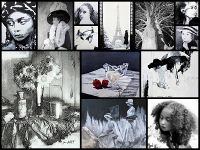 I am known for my use of color, so walking all the way to Black and White is quite the departure for me! But I have totally enjoyed creating these paintings in just black, white and gray acrylic although a touch of color did sneak in sometimes! There will be a few of my B&W photographs in this exhibit too.