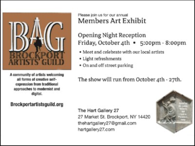 About the Brockport Artists’ Guild: A community of artists welcoming all forms of creative self-expression from traditional approaches to modernist and digital.