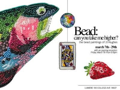 Please join us for Bead: can you take me higher? featuring 50 beautifully beaded works by Rochester superstar, JJ Hughes. This bold, colorful and FUN show is sure to help ward off those winter doldrums. Bead will be on view March 7th – 29th, with an opening reception on First Friday, March 7th!