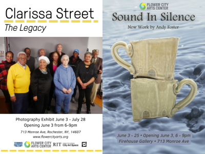 Check out our 2nd floor for this photographic exhibition, in collaboration with Teen Empowerment’s Clarissa Uprooted project. While Sharon Turner’s pictures showcase 24 years of the Clarissa Street Reunion history, the Portrait Profile Project studies legacy through an inter-generational lens. 11 Rochester youth from our Expanding the Field program photographed and interviewed 11 elders from the Clarissa Street neighborhood.
