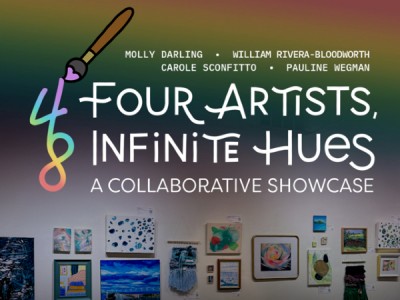 Please join us for the Closing Reception of ‘Four Artists, Infinite Hues: A Collaborative Showcase’ featuring the works of local artists Molly Darling, William Rivera-Bloodworth, Carole Sconfitto, and Pauline Wegman.