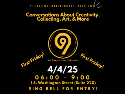 Join the 9th Floor Artists Collective on First Friday for an open studio night centered around vibrant conversations on creativity, collecting, and community. This casual and inspiring evening invites guests to explore artwork, connect with local artists, and share insights about the role of art in our lives. All are welcome — whether you’re a collector, creator, or curious visitor. Ring bell for entry!