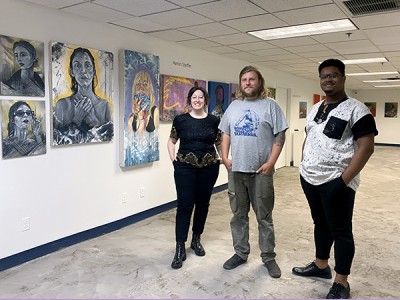 The artists of C.O.M.P. Studios are back with open hours this First Friday! Hannah Bell, Aaron Steffer, and Unique Fair-Smith (pictured) have been utilizing this free, temporary studio space to create a series of new work which will be on view alongside a selection of older work. Head upstairs to the second floor studio space to meet the artists, enjoy refreshments, and see what they’ve been working on!