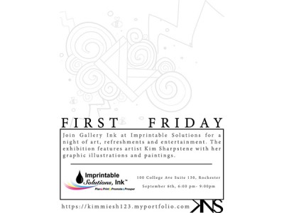 Join Gallery INK for a night of art, refreshments, and entertainment. The exhibition will feature artist Kim Sharpstene with her graphic illustrations and paintings.”