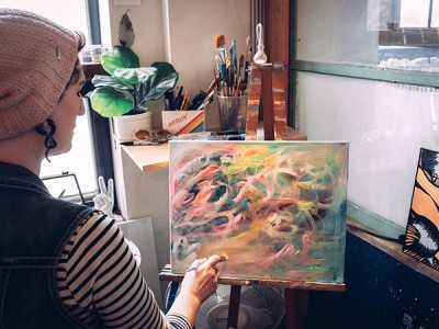Our artist of the month will be Molly O’Riley (@thedarlingrevolution on Instagram), founder and artist behind The Darling Revolution. She will be doing a live painting and artist talk. Molly is an abstract artist and proud Rochester, NY native. She uses paint, ink and other mixed mediums in her work. Her pieces focus on the juxtaposition of light and dark; of vulnerability and boundaries. The bold and vibrant paintings she creates use layers of color that are partially hidden underneath layers of black and line work in order to explore the hidden complexity of emotion and human experience that lies beneath the surface of everyone’s skin. The winding and connecting lines echo the vibrations and energies that connect us all. She sees her explorations in abstraction as an exercise in process: artifacts that show the covering and uncovering of hidden depths.
