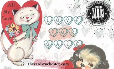 “Love for Sale” is a Valentine’s Collage show held right here at The Yards! This exhibit has 27 artists featured with collage works ranging from more traditional sweet and sappy pieces to some sultry new media works. Jurors are Yards Members Erica Bryant, JJ Pelechaty, & Cielo Ornelas MacFarlane. Show will take place January 22nd through February 12th with the reception on First Friday, February 4th from 6-9pm.