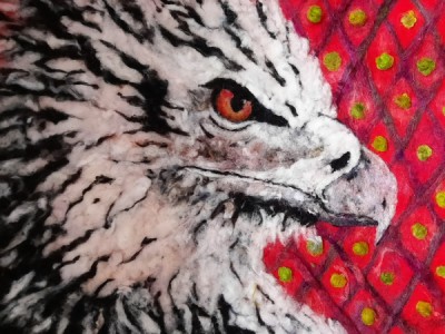 March Featured Artist Victoria Lee Connors will show “Birds of Prey” during our Anderson Alley Artists’ First Friday. Come check out her Felted Wool wall pieces in Studio 213, in our four-floor artist community. Visitors may also see Jewelry, Glass, Paintings, Sculpture, Textiles, Ceramics, Printmaking, Photography and more! Look for our colorful Alley doors at 250 N Goodman St.