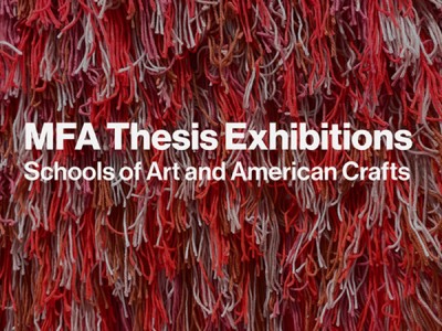 Graduate students in the RIT Schools of Art and American Crafts present their MFA thesis exhibitions in various media in two locations: City Art Space (downtown Rochester) and Bevier Gallery (RIT Campus). Featuring Abigail Benkovich, Eric Bohrer, Shuling Chen, Neha Atul Joshi, Shayna Kiblin, Chunbum Park, Jennifer Schoonmaker, and Morgan Sychtysz.