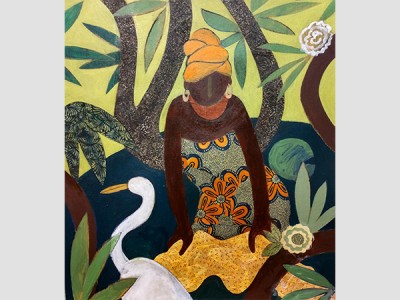 Fabric collage and paintings on canvas, Spirit Work assemblage, Serigraph prints and “Wrap Yourself in Art” blankets and wall hangings.