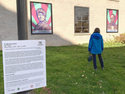 Springtime First Fridays are the best for viewing public art! On view outside RoCo is “Nia Panes” by W. Michelle Harris, an installation that reimagines the tradition of memorial stained glass windows through a contemporary lens. The project honors three foundational, though still lesser-known, figures in early Rochester: Anna Murray Douglass, Hester Jeffrey, and Austin Steward.