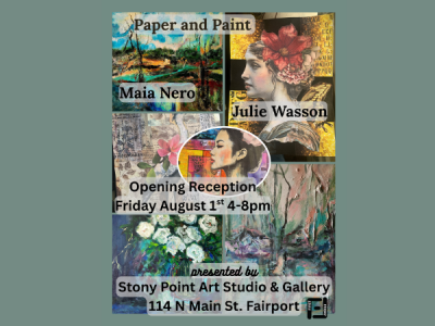 Visit Stony Point Art Studio for the opening reception of Paper and Paint. This exhibition will feature work by Maia Nero and Julie Wasson.