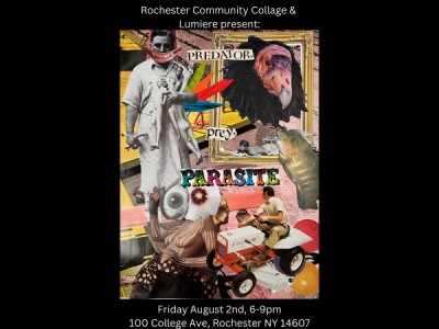 Step into the eerie realm of ‘Predator, Prey, Parasite’, where art meets the unsettling truths of the natural and unnatural world. Through haunting collage and multimedia pieces Rochester Community Collage confronts the primal instincts of pursuit and evasion, exploring the delicate balance between hunter and hunted. Prepare to confront your deepest fears and marvel at the macabre beauty of nature’s dark underbelly. We present to you this unnerving exploration of life, death, and the unseen forces that bind us all.