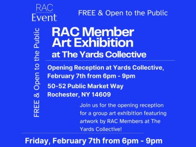 Get ready for an incredible showcase! We’re thrilled to announce the Members Exhibition featuring artworks from the Rochester Artist Collaborative (RAC). Founded in 2019, RAC is dedicated to creating a vibrant art community and supporting the artists and creatives who enrich our city’s culture and economy.⁠ Join us at The Yards Collective throughout the month of February to experience the amazing talent of RAC members. The exhibition will have an opening reception on First Friday from 6-9pm, and you won’t want to miss it!⁠