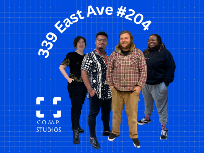 C.O.M.P. Studios provides artists with free, temporary space to advance their practice and engage the public. This initiative expands RoCo’s work to support artists and build the ecosystem for contemporary art in Downtown Rochester. Presented by Rochester Contemporary Art Center (RoCo) in partnership with Chashama and supported by The New York State Council for the Arts, this initiative builds upon grassroots efforts like First Friday, Rochester’s Citywide Gallery Night, and 2019’s Current Seen, to foster new art spaces. C.O.M.P. Studios is proudly led by small, community-based arts organizations and maintains an artist-centered focus. In addition to providing work space, this initiative will boost an artist’s access to audiences and expose the public to an artist’s latest project. C.O.M.P. Studios is Creative Opportunities Made Public.
