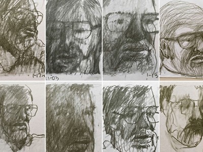 RoCo presents two exhibitions in memory of Stewart Davis. Stewart, Sarasota, 2003 features a series of drawings by Anne Havens of her husband, Stewart Davis. The sketches were made during six weeks spent in Sarasota, Florida in 2003 for his cancer treatment. Anne has offered the drawings, along with a little book of mementos, for exhibition in RoCo’s Lab Space to help us all remember Stewart, who passed away in early 2021.