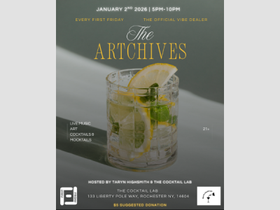 Transforming the new Cocktail Lab into a monthly immersive experience, The ArtChives invites you to an intimate First Friday curated and hosted by Taryn Highsmith. Each month features a unique art medium and live musical artist, with crafted cocktails and mocktails by owner Brandon Pinkins. $5 suggested donation.