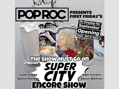 POP ROC will be bringing back four of the artists from Super City Rochester. Here’s your chance to see them all together, one more time. Join us this First Friday as we welcome back Aaron Humby, Josh Lopez, Sam Cicero, and Aaron Benton for the Super City Encore Show.