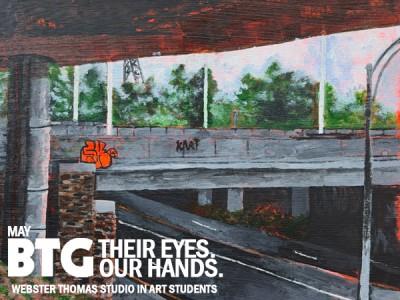 Since December, the group of mostly 9th graders have been working on paintings based on photographs from around Rochester taken by two of our curators, Richard B. Colón and Quajay Donnell. Taught by educator, artist and Behind the Glass alum Todd Stahl, the students chose their favorite images and began each piece with bold underpainting, while experimenting with how to let some of it breathe through and bring new life to these photos.