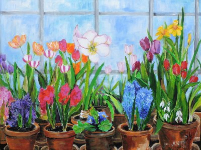 This collection of florals is wide ranging in style and certainly varied in size from a 4×6 print to 30×48 inch oil. Over 30 pieces will be displayed. A special sale will be a highlight and I only do two sales a year, one in spring and one at Halloween!