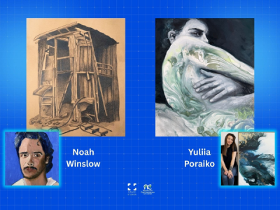 Visit COMP Studios at RoCo Upstairs to see the projects that artists Noah Winslow and Yuliia Poraiko have been working on during their residency.